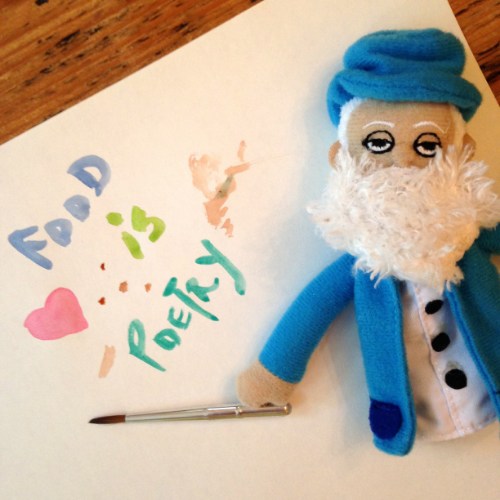 13. “Food is Poetry” – I couldn’t agree more, Jama. I love how Lisel Mueller’s poem captured the “benefits” of failing eyesight. I recently got my first pair of Rx glasses…sometimes the fuzzy images are easier to see, especially on my face. LOL = )