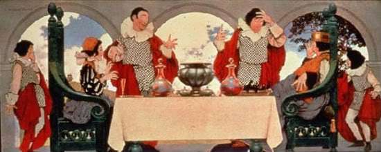Apparently hiding living things in pie was pretty common in olden times as a form of banquet entertainment. Just when I thought live blackbirds were a pretty cool surprise, I come to find they also included other small animals, such as frogs, turtles and rabbits. The ultimate surprise, however, involved small people! Yes, diminutive individuals were hidden in pies, popping out to the delight of assembled guests, after which time they might stroll up and down the table doing tricks or reciting poetry.