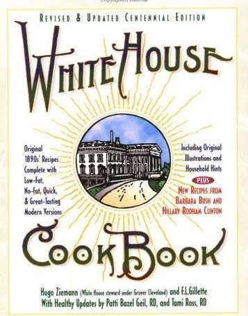 The Revised and Updated Centennial Edition of The White House Cookbook thankfully contains modernized recipes by Patti Bazel Geil, R.D., and Tami Ross, R.D., which are decidedly more heart-friendly, right alongside the original 1890’s ones. This makes it possible and pleasurable to “participate in history” with a minimum of guilt, and won’t require you, for example, to add 20 eggs to cake batter and beat it vigorously for 3 hours.