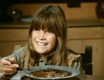 Some of my favorite Carrie moments are of her at the table. I especially loved “Ma’s Holiday,” when Mr. Edwards stayed with the girls and cooked them Injun Stew (made with rattlesnake meat). Were you the one who smeared food on Mr. Edwards’ face?