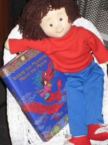 He loved reading about the greedy monkeys, but he also remembered the part about Minli using her last copper coin to buy a peach for a hungry beggar. After he ate the peach, he planted the pit, which instantly grew into a big tree full of ripe, luscious fruit. Mmmmmm! All the people in the marketplace relished those peaches, and Minli soon discovered who the beggar really was.