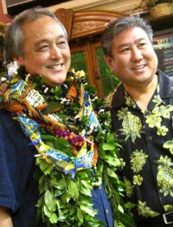 Arnold with Chef Alan Wong at the Book Launch Party.
