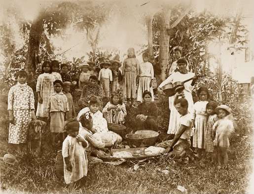 Windward O’ahu family preparing for a luau, circa 1910 (Hawai’i State Archives).