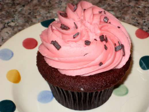 Len and I both liked the chocolate cake in the Raspberry Beret, but decided a fruity frosting wasn’t our thing. Pretty little cupcake, though.