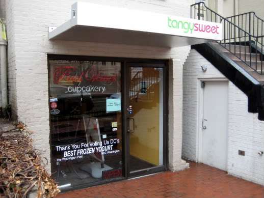 It was hard to find, because it’s a teeny tiny shop located in the basement of a brick townhouse. Apparently, they share a space with Tangy Sweet Frozen Yogurt. You step down to enter; it’s dark, stark, and cement-y. A little seating area on the right, stand-up counters on the left, sort of like fingerprinting stations in an FBI office (not that I’ve ever been fingerprinted). ☺