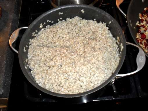 Add last 1/2 c. of vegetable broth to barley mixture to make it a bit sticky.