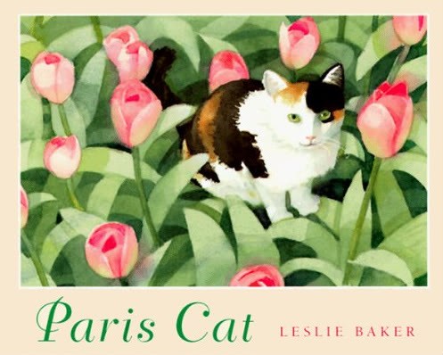 PARIS CAT by Leslie Baker (Little, Brown, 1999). If you ask Alice the calico cat, Paris is full of dogs. On her first visit to the splendid city, she spots a mouse, and can’t resist chasing after it, despite Annie trying to call her back. So, it’s dart this way and that, scamper and scurry down one street after another, past shops, through an outdoor market (“Mmmmmm . . . cheese . . . sausages . . . fish”), down the banks of the Seine. The mouse is soon forgotten when Alice’s fun is foiled by dogs dogs dogs everywhere. To escape, it’s in and out of the Louvre, off a bridge!, tumbling onto a bateau-mouche. Now Alice is exhausted. How will she ever find Annie? Such a lively tail, accompanied by lovely soft-edge watercolor illos. A catnap completes this purry fine cat’s eye view of Paree. ☺