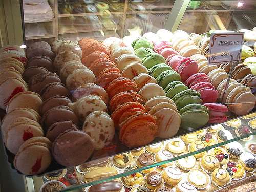 But “macs,” as they are affectionately called, are so much more than pretty, elegant cookies served with coffee, tea or champagne. Not only are they challenging the cupcake’s popularity as favorite hand-held sweet among foodies in this country, but in Paris they are serious status symbols. In his cheeky blog post, French sommelier Olivier Magny calls the macaron “a key social lubricant in Paris.” Strong stuff for such a little cookie. “While most Parisians have given up on ancestral guilty pleasures (sex, drugs, alcohol), very few will say no to the modern form of socially acceptable vice: Le Macaron Ladurée.”