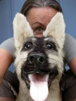 Cassie: Just because I’m a big German Shepherd/Doberman, some people think I’m scary or that I want to bite them. It hurts my feelings. I just want you to bring your head down to my level so I can sniff and say hello. I won’t even lick your face.