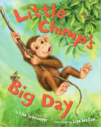 Hey, wild thing: grab a vine so we can swing through the jungle! We’ve got the perfect excuse to go totally bananas today, because Lisa Schroeder’s third book this year, Little Chimp’s Big Day (Sterling, 2010), is officially out!