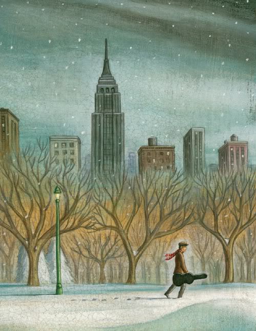 Though there are several middle grade Dylan biographies, and two recent picture books illuminating his song lyrics — Man Gave Names to All the Animals illustrated by Jim Arnosky (Sterling, 2010), and Forever Young illustrated by Paul Rogers (Atheneum, 2008) — Golio’s is the first trade picture book biography featuring the iconic music legend.