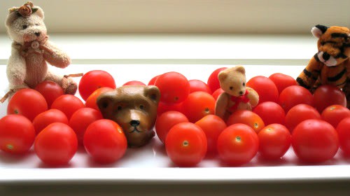 or tomato macarons (Paprika planted “a bazillion” cherry tomatoes near C.R. Mudgeon’s door):