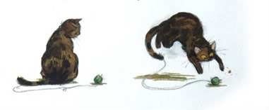 “Minette had spring fever. She bolted out the window onto the roof and made gurgling noises, raced up and down the stairs, leapt into my lap then out again, then sat in the middle of the rug gurgling some more. The vet had informed me that she was not a mutt at all, but a rare type of Spanish cat called le tricolaire, which pleased me no end.” (My Life in France by Julia Child with Alex Prud’homme (Knopf,2006)).