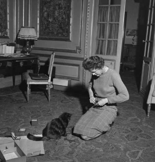 Shortly after Julia and her husband Paul moved to Paris in 1948, they were adopted by “a mischievous, energetic poussiequette with a lovely speckled coat,” whom they named Minette Mimosa McWilliams Child. This sly, feisty feline instantly charmed her way into their hearts and became an important part of their lives, sitting on Paul’s lap during meals and stealing tidbits off his plate when she thought he wasn’t looking.