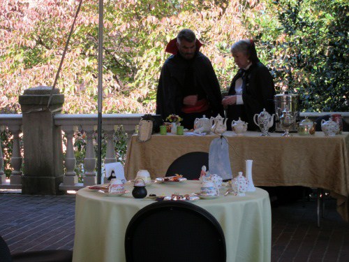 The tea was held on the terrace, where Count and Mrs. Dracula filled teapots when they weren’t filing their fangs. The epitome of social politeness, they complimented us on our clean necks.
