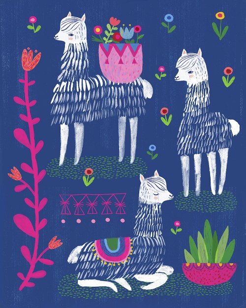 A graphic design major, Sarah worked at Hallmark for 12 years, has also illustrated for other card lines, helped Crayola create a character-based tween girl brand (Pop Art Pixies), and has designed typefaces and surface patterns (client list includes Usborne, Peaceable Kingdom, Land of Nod, Perseus, Red Rooster Fabrics). She and her artist husband Colin (love that name!) share a basement studio in their home and sell prints and other goodies via their Etsy shop Petit Reve.