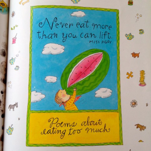 3. So much fun! I don’t know this anthology either and can hardly wait to nosh on those poems. Plus, the illustrations are so lively.