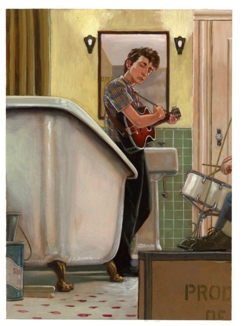 I love Adam’s illustrations! They’re so beautiful and full of life, and the painterly details are extraordinary. Look at the subtle coloration on the tub in John’s mum’s bathroom, or the play of light and shadow on the sheets and blanket of George’s bed. The boys’ likenesses are superb, their body postures so expressive. I especially appreciate the attention Adam paid to historical details in clothing, hairstyles, furniture. And the musical instruments! Getting those right was really important, not only because we wanted to be accurate, but because Beatles fans are real gearheads.