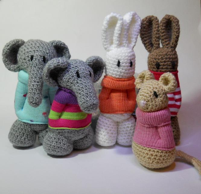 Amigurumi is the most difficult to learn and then use to create unique creatures. Each design takes many hours to create. I especially love sock creatures because a sock is so very versatile and the perfect medium to sculpt all kinds of shapes. Most of the hard work is done for you in shaping as the tubular flexibale form opens up so many possibilities. I think I have over the years made most kinds of animals from socks. They are also available in so many colours and patterns. I add socks to lots of my Amigurumi creatures too as they are perfect for making little sweaters or adding noses and ears to the tiniest of creatures.