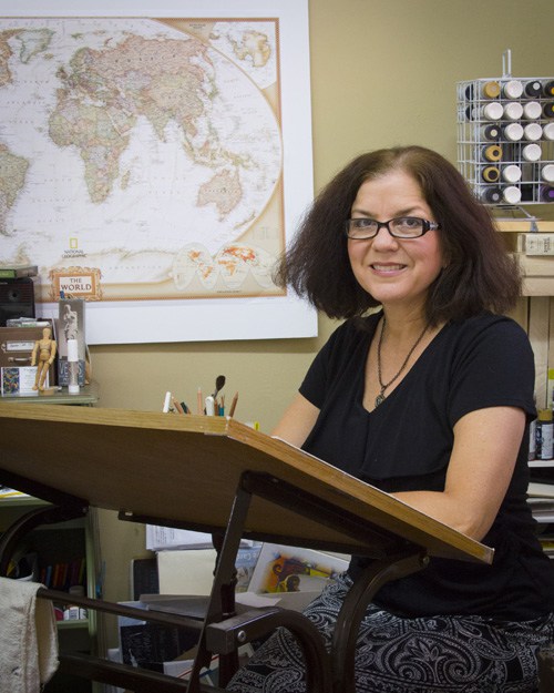 I’ve taken workshops with some amazing folks, including Caldecott medalist Eric Rohmann, illustrator Melanie Hall, and calligrapher Peter Thornton. I never met Holly Meade in person, but her work inspires me at a deep level. I love Ashley Wolff’s work. And I know I’m among many Julie Paschkis fans around here! When I started making mixed media pieces, I found Seth Apter’s work and tips helpful.