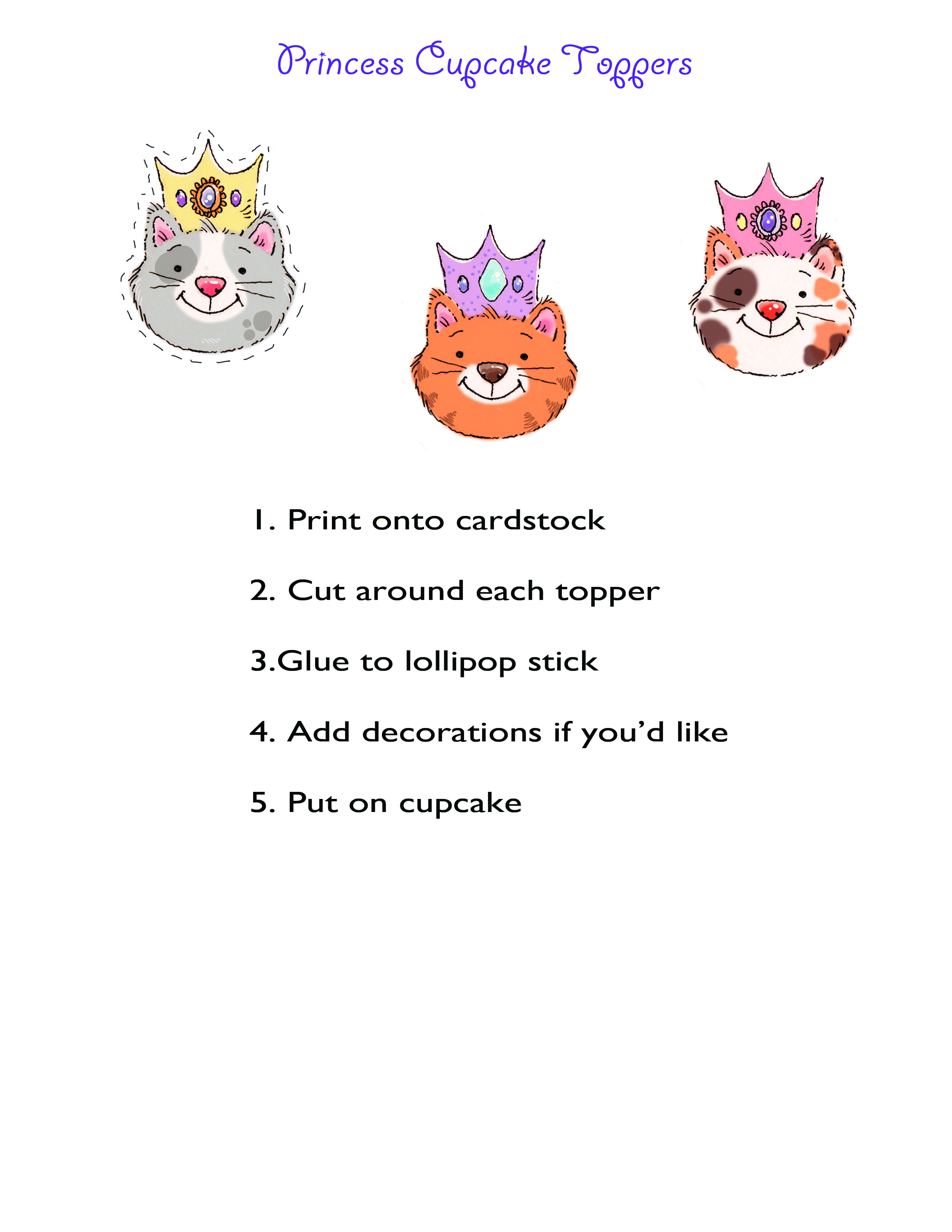 ♥️ Cool Extras: Click on the images below for larger, printable versions of the coloring page and princess cupcake toppers.