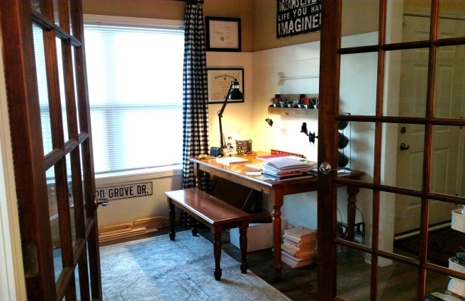 Christine’s drawing table is actually an old, beloved kitchen table.