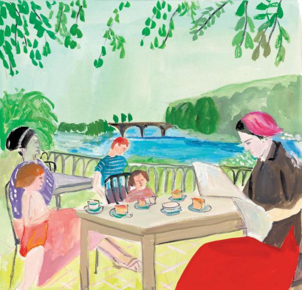 Her inimitable gouaches are pure beauty and joy. She’s an artist who simply loves to paint cakes, and I love all her table settings with people gathered round, cakes on platters, stands, and plates, cups of coffee and tea. There’s a charming story in each picture. What are those women in head scarves talking about? Watch Tali spoon the cake batter into the bundt pan and the boy blowing out his birthday candles. Look at that stunning, very pink table with its dazzling Pavlova!
