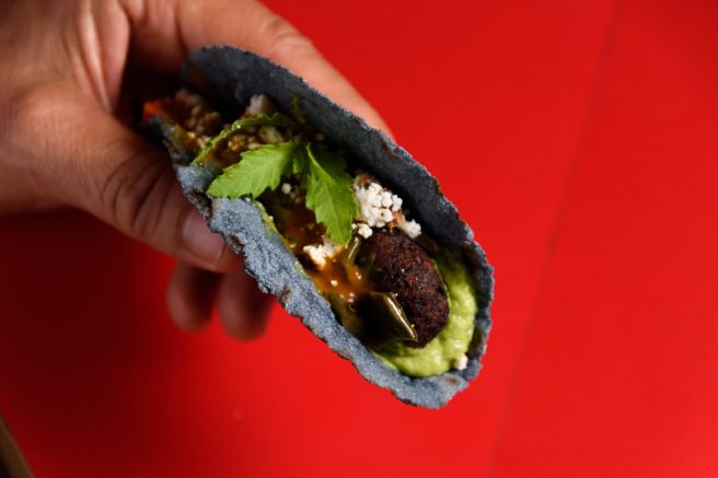 But in Brazil, they have jenipapo berries. Normally, this berry is used to make compotes and syrups, but these days chefs are interested in the unripe and bitter fruit, which contains genipin, a substance which reacts with proteins and amino acids in the presence of oxygen or heat, resulting in an edible blue pigment.