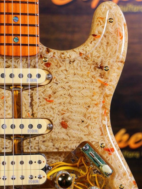 Artem Mayer of Copper Guitars used 36 packages of instant ramen noodles and 5 litres of polyester resin to create his tuneful masterpiece.