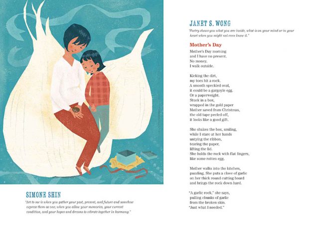 *Interior spread of “Mother’s Day,” text copyright © 2019 Janet S. Wong, illustration © 2019 Simone Shin, published by Lee & Low. All rights reserved.