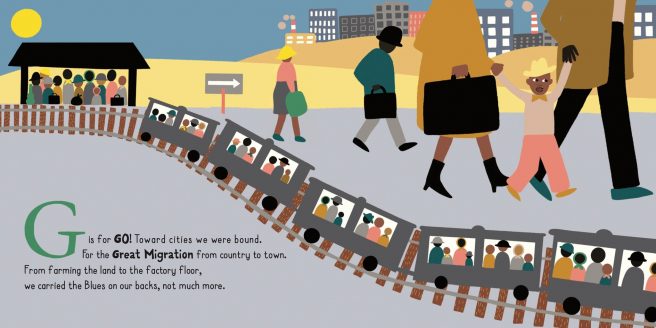 Now, if I absolutely had to choose one letter to capture the book’s essence, perhaps it would be “R,” as it’s rich, radiant, rousing, readable, and resourceful. But that would only begin to describe it, because in addition to being an inventive alphabet book celebrating Black history and culture, it’s also a story of strength, persistence, and resilience, a timely call to action, and a loving praise song of hope, creativity, and pride.