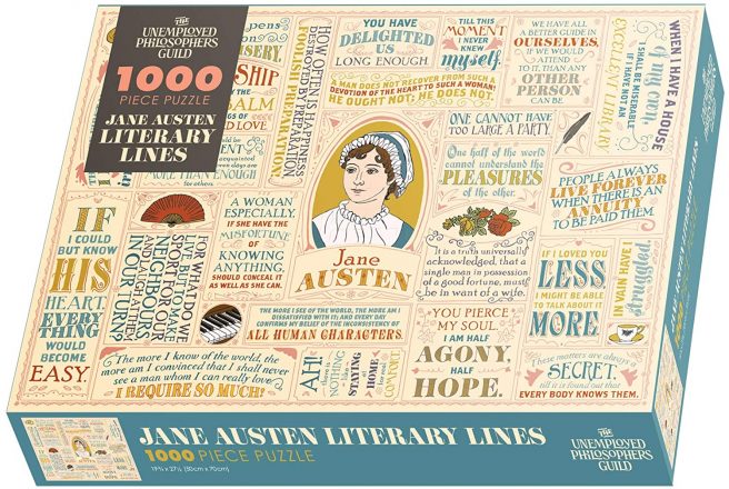 And, while you await his proposal, pass the time with this 1000-piece Jane Austen Literary Lines jigsaw puzzle.