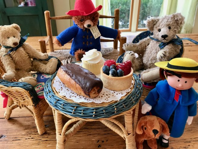 Abby and Louie happily greet Phoebe, who takes her seat next to a doll and two bears. But when Abby tries to bring in the treats, she struggles with the heavy tray. It starts to slip, then bobbles and wobbles – then Abby stumbles and trips. Oh no!