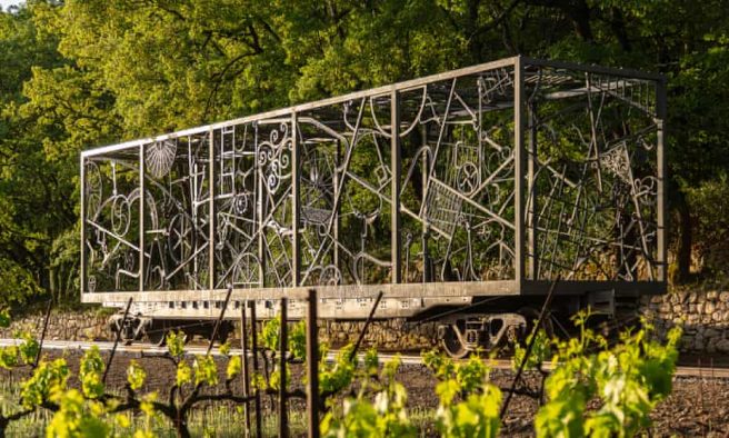 This sculpture, of a railway freight carriage, is his largest so far and was made with seven tons of iron. It’s installed on train tracks in Château La Coste. It features motifs of ladders, wheels and tools.