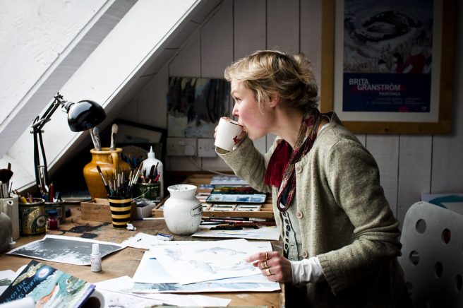 Brita admires Scandinavian artists Edvard Munch, Helene Schjerfbeck, and Sigrid Hjertén. Favorite contemporary artists/printmakers include Emily Sutton, Alice Pattullo, and Angie Lewin, and she likes Helen Stephens’s and Emily Mackenzie’s children’s books.