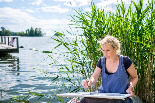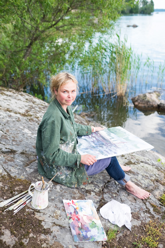 We live in an old Georgian house in the borders with lots of character and a wonderful soft light which inspires many of my interior paintings. We have also built our own wooden house in Sweden near a lake. The vibe is different in both places – but I like them both equally.