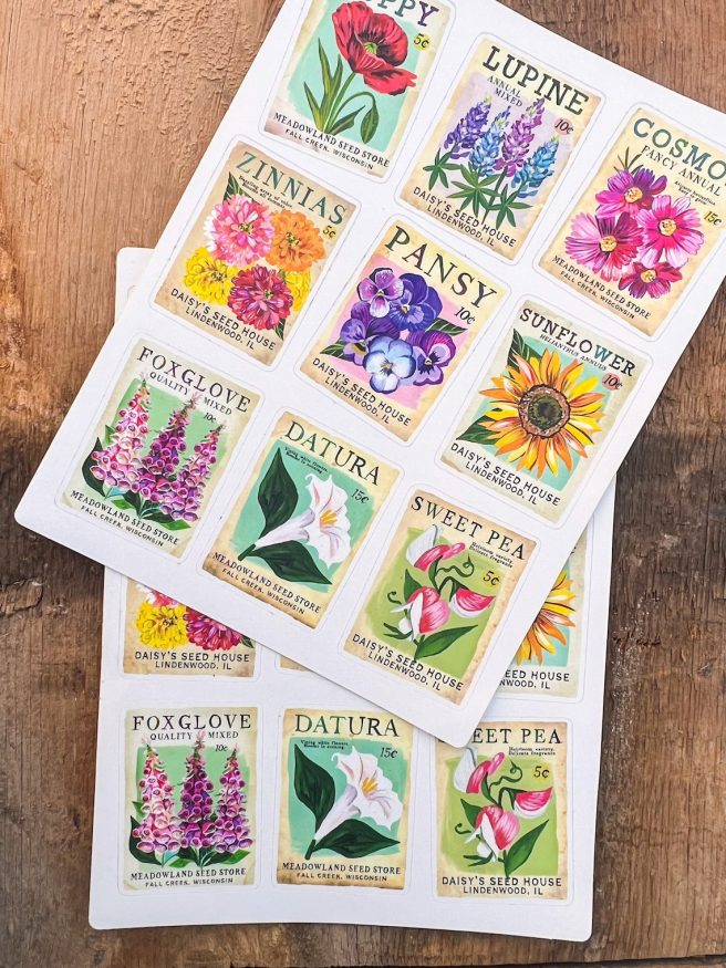 Recently I’ve been enamored of her new seed packet design, which features nine different flowers. So pretty!
