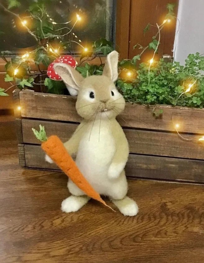 In addition to bunnies, they make other animals, birds, home decor items and animal brooches. Browse the Tepla Wool Workshop to see all the delightful offerings.