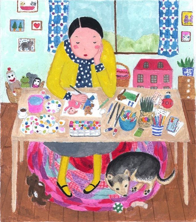 Welcome to Mari Takabayashi’s cozy world, where adorable animals eat, play, and relax together or with their human friends.
