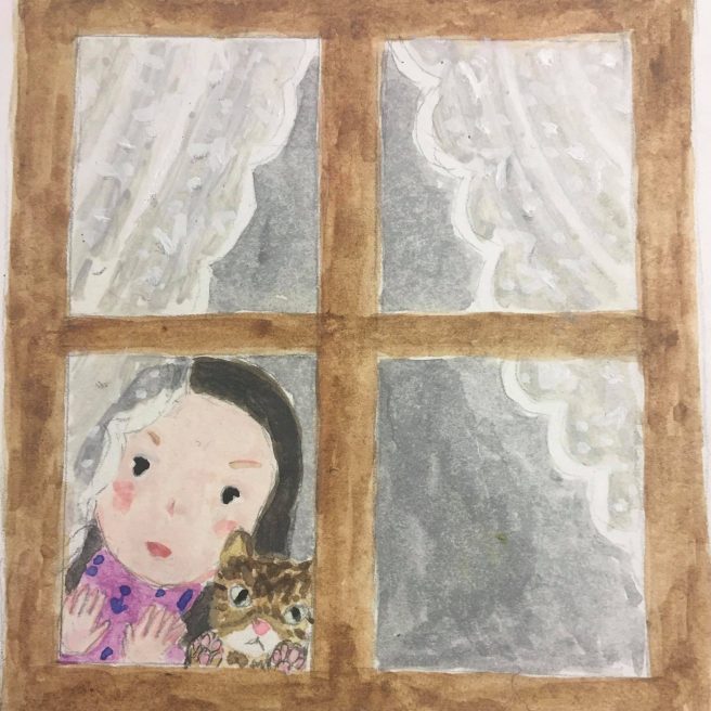 Jama, I’m happy for you that you found this new artist. I agree with you that her artwork is adorable. I love her style with the colorful pastels, how you can see her strokes, especially in the animals making them look like fur, how she leaves a little white space around some animals or objects to highlight them… I am always drawn to animal illustrations, especially cats. I was immediately captivated with her work; I liked seeing her in action in her studio and hearing her talk about her illustrations. The puppy washing in the claw tub is funny and cute. I noticed she painted/colored a lot of striped cats; I have one sitting behind me, who is taking her bath, but not in a tub. 🙂 Thank you.