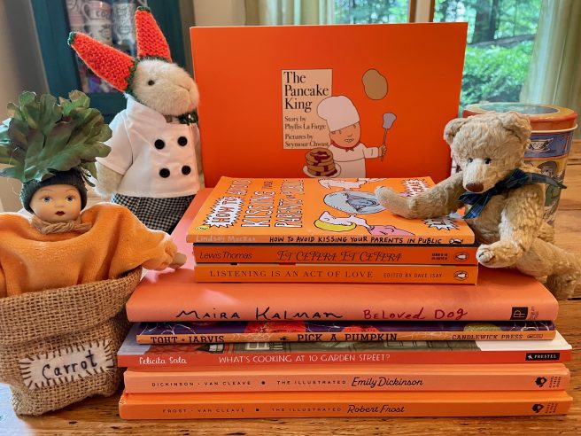 1. Can’t say I have a fave orange recipe — unless you count Orange Marmalade Cake (Pioneer Woman). Did you see Pick a Pumpkin in the book pile? šŸ™‚