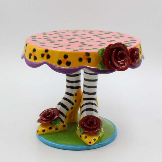 The cake stand is mini-sized (6-1/2″ diameter) — more for a cupcake or two rather than a standard cake. The tea for one set can be stacked.