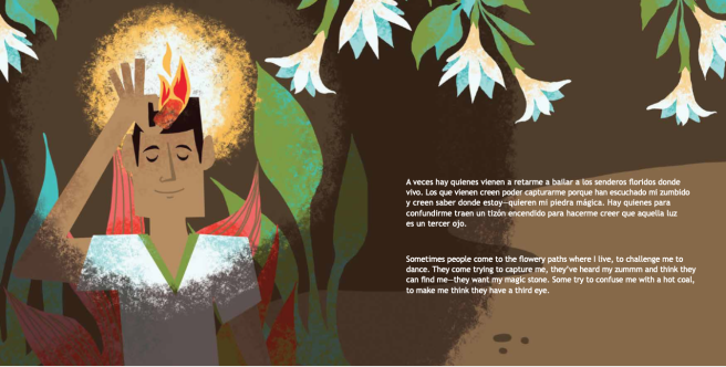 I enjoyed reading a digital copy of this captivating tale and was happy to “meet” esteemed Salvadoran author, poet, and critic Manlio Argueta in the pages of this book. His text is rhythmic and poetic, and I know young readers will enjoy finding out if anyone was able to meet the challenge to obtain chinchintora’s magic stone. Cuéllar’s lively, colorful illustrations dance across the pages, making each page turn a delight.