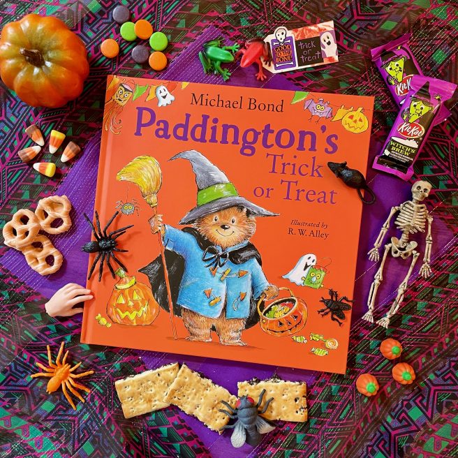 It’s almost Halloween, that special night when wee ghosts, goblins and witches roam the streets collecting sweets. What’s your favorite? Snickers, Twix, Kit-Kats? Well, much as we love chocolate, the furry Alphabet Soup kitchen helpers and I agree there’s no finer treat than a brand new Paddington picture book. 🙂