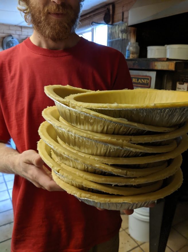 Lucky for us, our pie production started slow. We would gather around the kitchen table after dinner and peel apples by hand. We had an old stand-mixer and would make one crust at a time and bake just a few pies. Our original store was at the bottom of the driveway and one of us would walk a hot pie down to entice customers. I remember my sister bringing in a pie and the customer I was assisting couldn’t decide if she wanted it or not. The second she declined, the customer behind her snatched it up so fast, you could see the regret on the first person’s face.