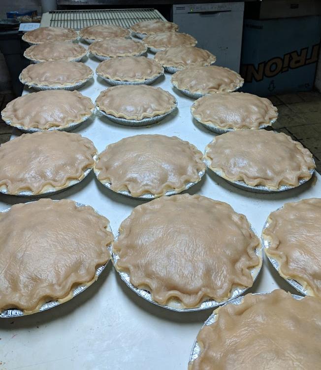As for catastrophes, each year brings its own challenges. One year, with 3 of us baking, my son and I became sick in the middle of the night. My mom, well into her 80’s, came to our rescue. Once we lost power just as the last pies came out of the oven and we were boxing them by flashlight. As much as we try to prepare, we never know what will happen!