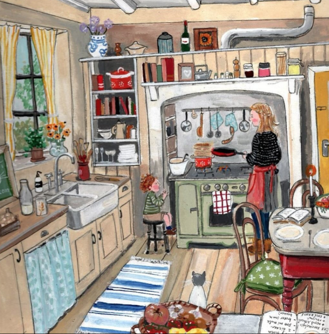 When Persons speaks of kitchen tables, toast crumbs, Grandmother’s plates, the smell of Sunday roast — I am reminded of just how much I particularly love kitchen interiors. Where does cooking, baking and eating take place? What kinds of equipment and utensils are used in food preparation? What culinary adventures take place where people naturally gather?