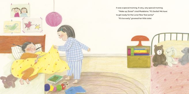 This charming story is a delightful introduction to Seollal and a captivating study in sibling dynamics. Single-minded Madeleine takes her big sister role quite seriously, making sure she shows Eloise exactly how it’s done. Little Eloise is compliant and determined, showing off her sweet side as she offers to help a worried Madeleine write the poem. I imagine readers who have “bossy” older siblings will fully appreciate Eloise’s thoughtful gesture.