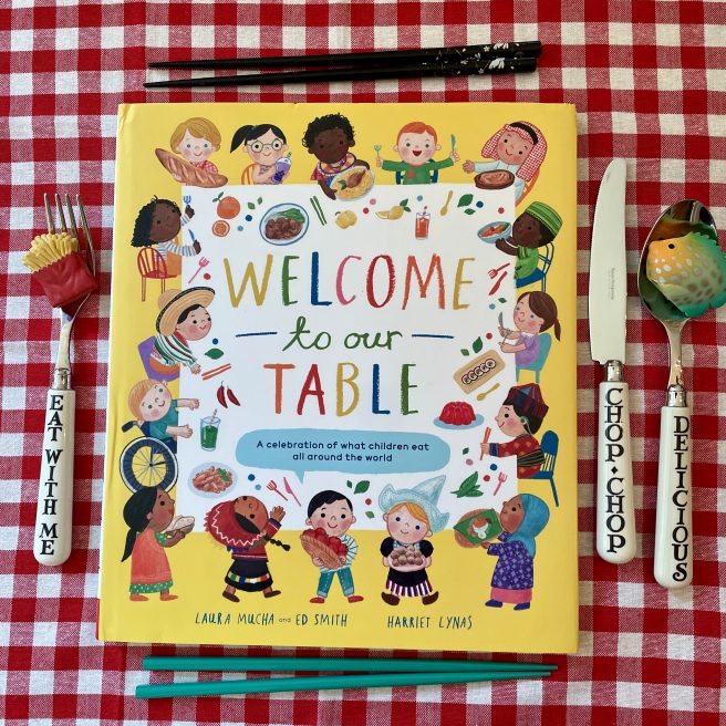 Welcome to Our Table: A Celebration of What Children Eat All Around the World (Nosy Crow, 2023) is an epic smorgasbord featuring hundreds of dishes and ingredients, both familiar and exotic, temptingly flavored with fascinating tidbits about how certain foods are grown and prepared.