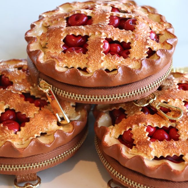Also love her nostalgic favorites (PopTarts, Pineapple Upside-down Cake, Mac ‘n Cheese), seasonal offerings (gingerbread boys, Yule Log, Peeps), cartoon characters (Tweety, SpongeBob Popsicles). Basically, just dream about anything you like to eat — sweet or savory — chances are good Rommy has already made it into a handbag. 🙂